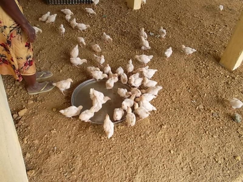 Das Gebäude für die Hühnerfarm war schon länger fertig und wartete geduldig auf den Einzug der Hühner. Schwierigkeiten bereitete uns die Beschaffung von geeigneten Küken. In Liberia gibt es keine Brüterei und auch aus den Nachbarländern (Guinea oder Elfenbeinküste) ist der Bezug von Küken wegen allgemeiner Knappheit schwierig.